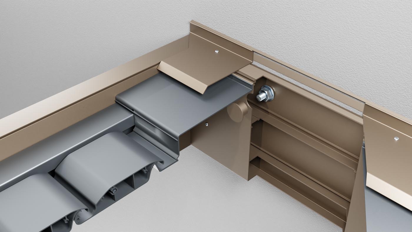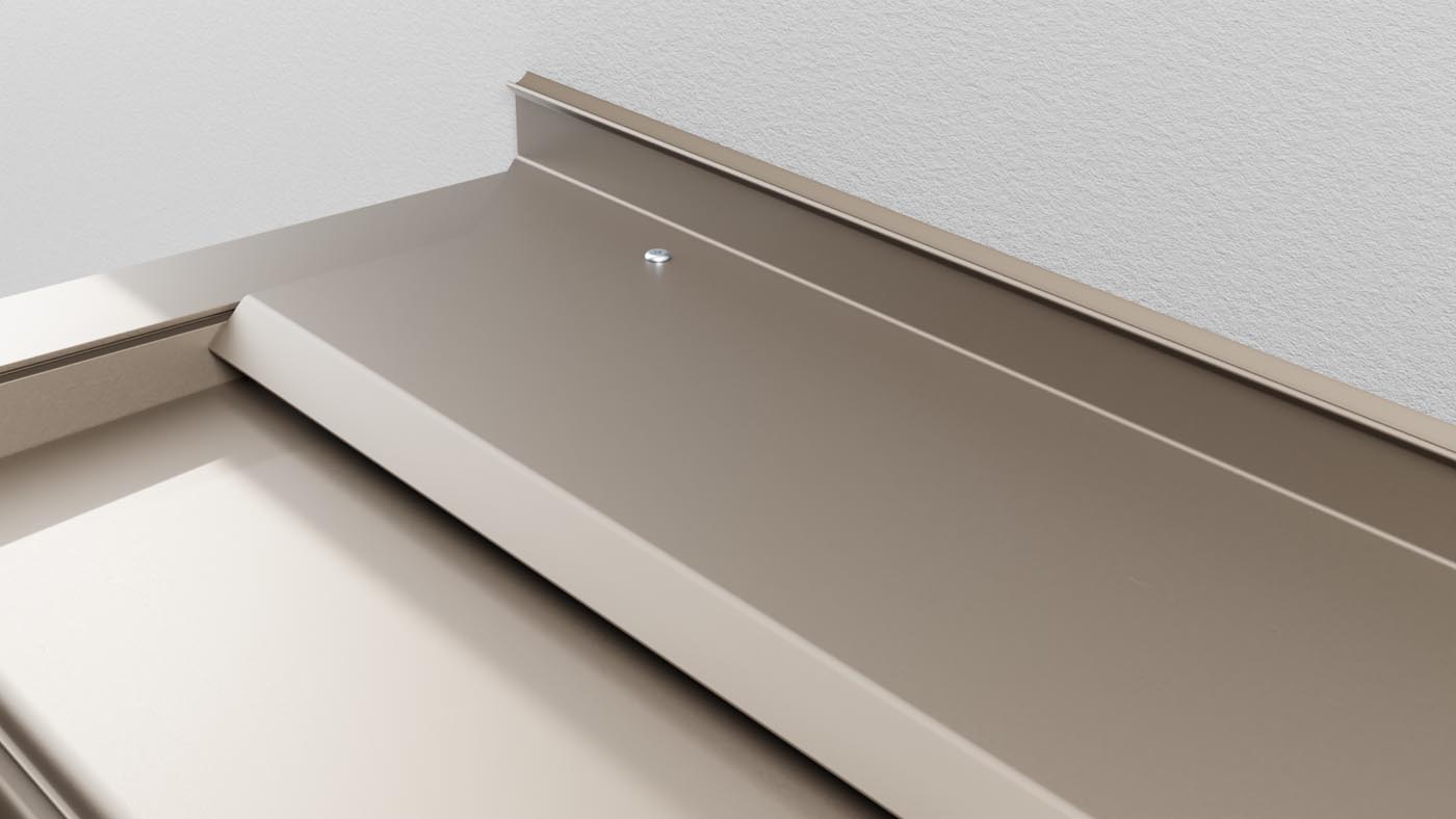 Kako bi se spriječilo prodiranje vode između fasade i pergole (i time mrlje na fasadi), postavljamo poseban aluminijski brtveni profil. Profil je prilagođen specifikacijama objekta i osigurava da voda s fasade odlazi preko pergole u žlijeb, dok spoj ostaje suh.